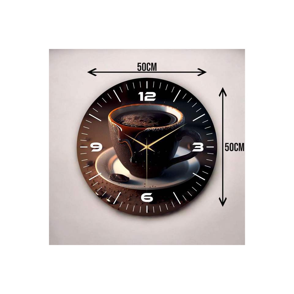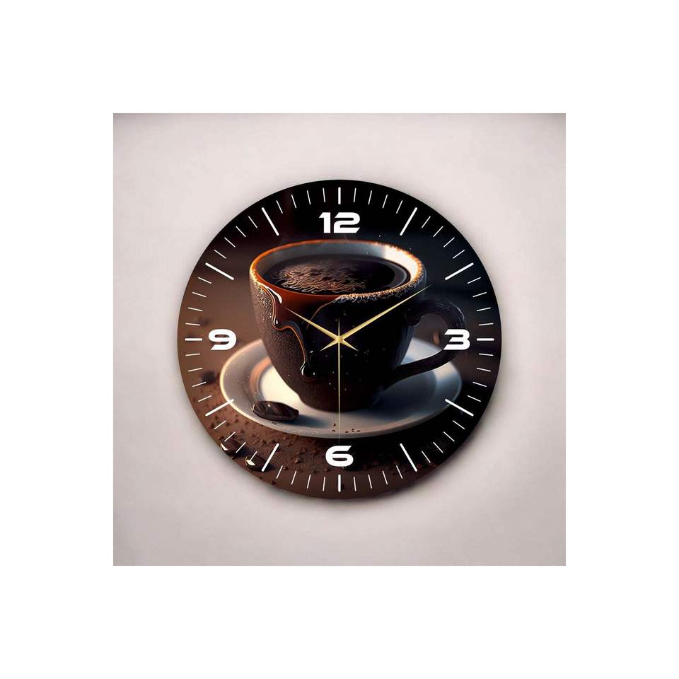 Reloj de Pared Redondo de Madera con Diseño de Café Colorido, 50 cm, Silencioso, Perfecto como Regalo