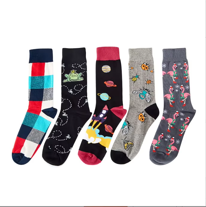 Calcetines Divertidos de Algodón Peinado con Diseño de Gato y Estrellas Espaciales para Hombre, Venta al por Mayor