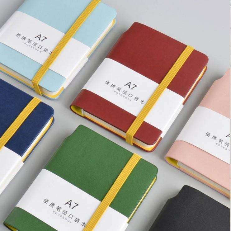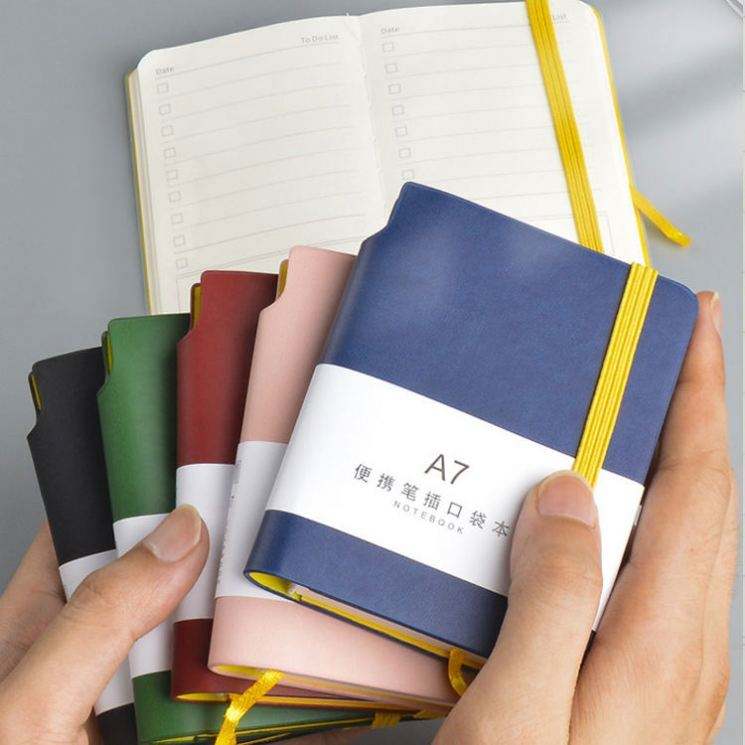 Cuaderno Pequeño con Forro y Cubierta Colorida, Libreta de Notas A7 de Cuero PU, Portátil, de Bolsillo, para Estudiantes, con Portaplumas