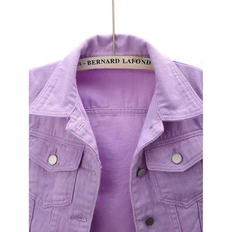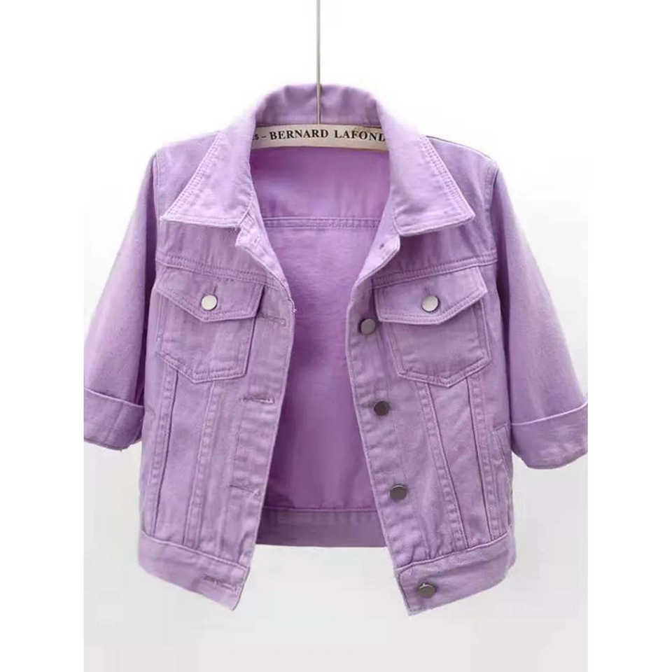 Chaqueta Vaquera Corta Colorida con Decoración de Botones, Diseño Moderno de Top Corto