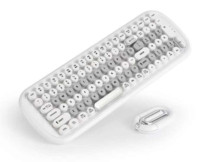 Combo de Teclado y Ratón Inalámbrico Colorido y Atractivo, Teclas Redondas Retro, Juego de Teclado y Ratón Tipo Escritura para PC, Laptop, Notebook, Escritorio