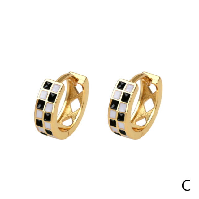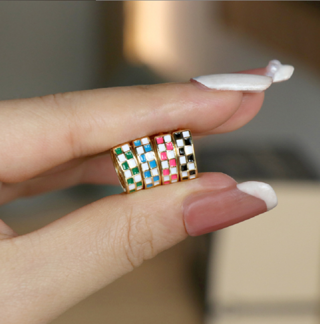 Pendientes de Acero Inoxidable con Baño de Oro de 18K, Diseño a Cuadros Esmaltados Coloridos, Estilo Goteo de Aceite