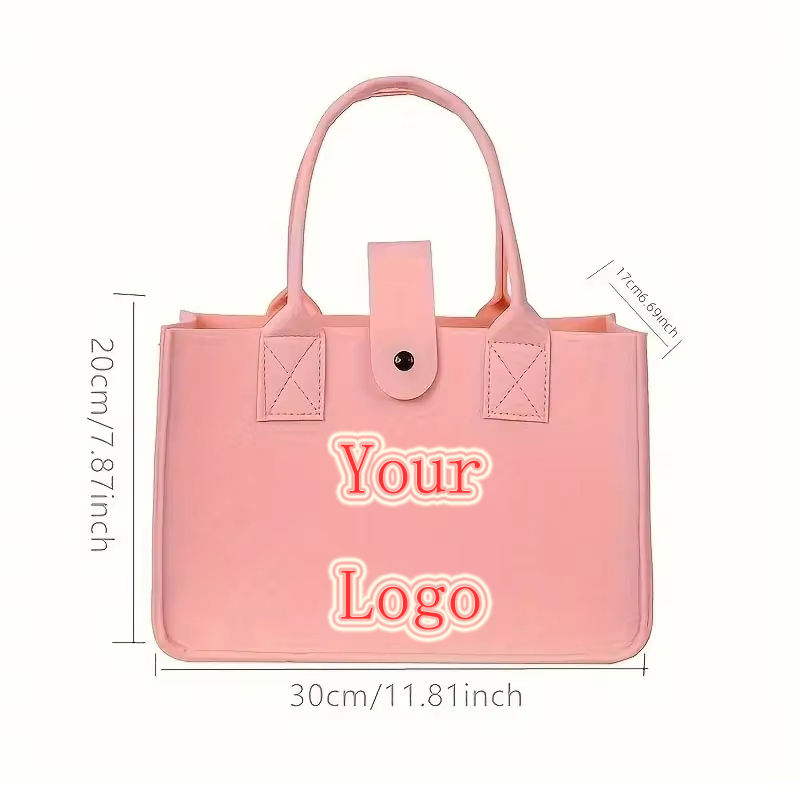 Bolso de mano de fieltro colorido con cierre de botón Bolso de compras reutilizable para mujer Oficina Uso diario Personalizado disponible
