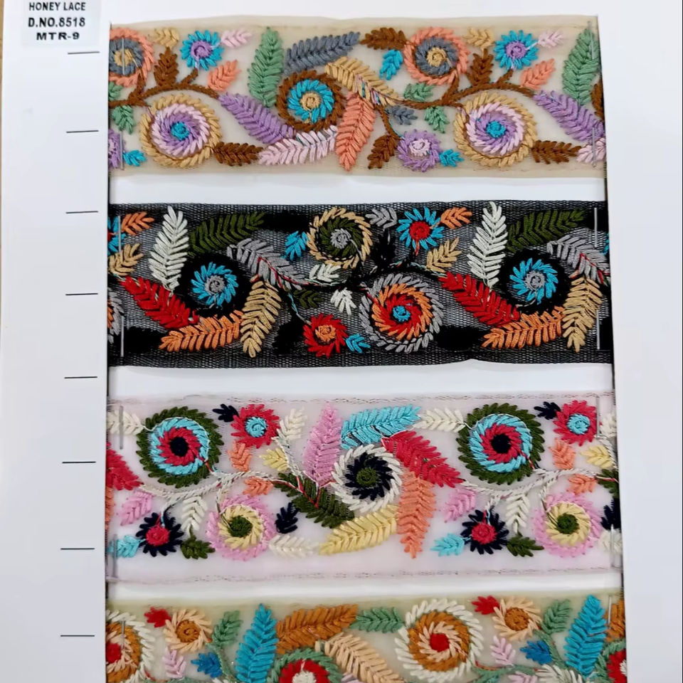 Encaje bordado floral colorido con detalles intrincados para ropa de novia de estilo de negocios y accesorios de moda para bolsos de ropa