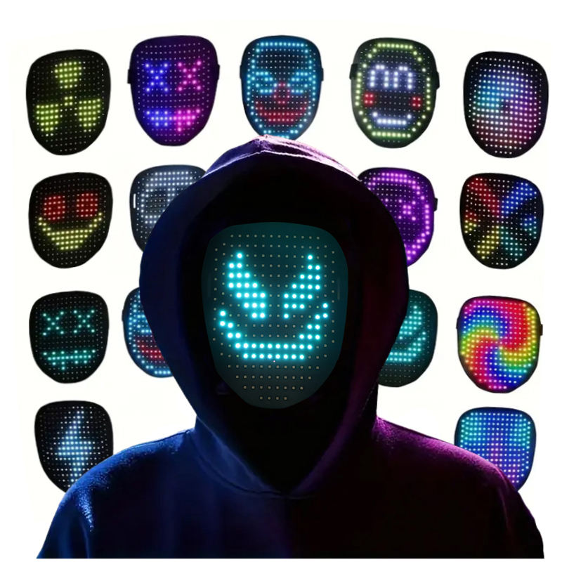 Máscara LED de EVA con Sensor de Gestos y Patrón Floral Colorido para Carnaval, Fiesta, Halloween, con Batería de 700mAh, 3535RGB, Cobertura Facial Completa, Redshark