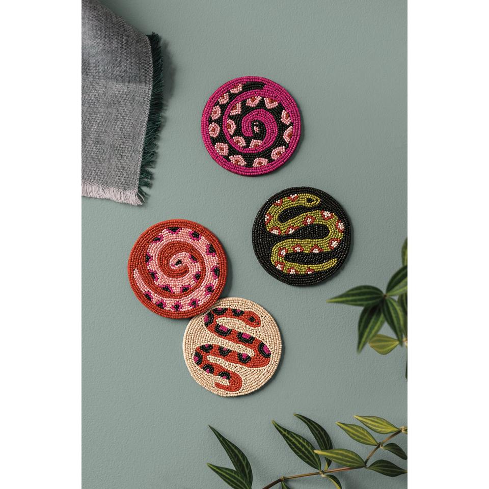 Posavasos de Lona Duradero con Cuentas de Semillas Hechas a Mano, Bordado Floral Colorido, Decoración Boho para Mesa, Regalo Personalizado, 10mm
