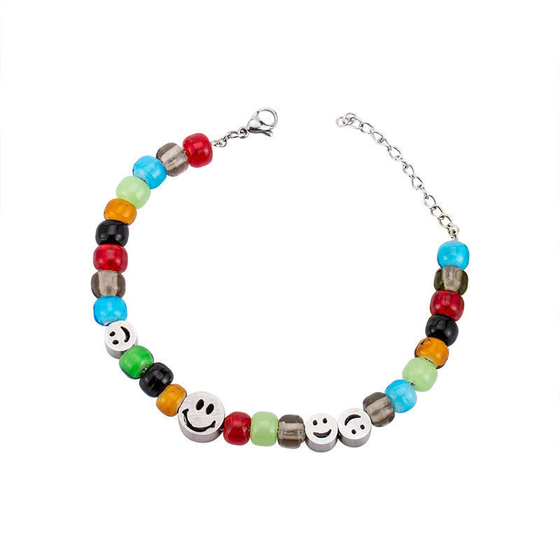 Pulsera de Cuentas de Vidrio Coloridas con Cara Sonriente de Acero de Titanio, Joyería de Moda Unisex