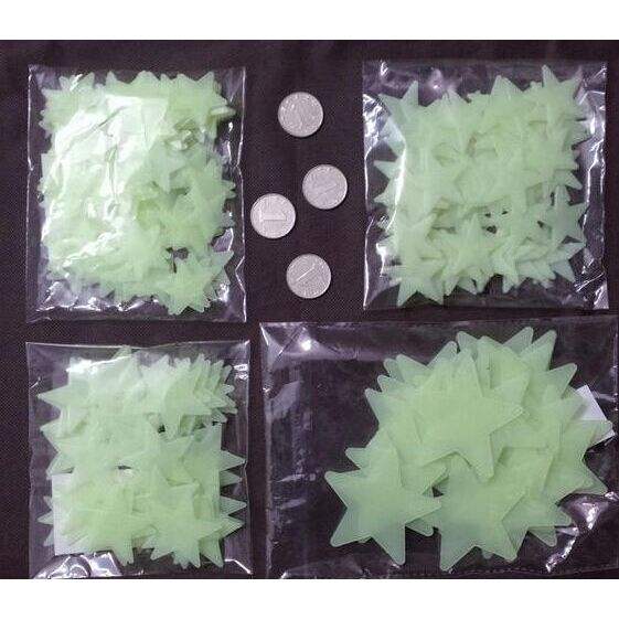 Pegatinas de pared de estrellas que brillan en la oscuridad, coloridas, fluorescentes, autoadhesivas, de PVC, decoración del hogar, paquete de 100 piezas, 3 cm