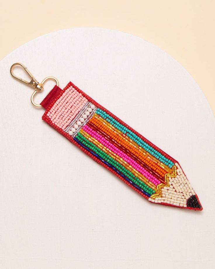 Llavero de Lápiz con Cremallera y Cuentas Hechas a Mano, Diseño Escolar Adorable para Niños y Niñas, Regalo Creativo