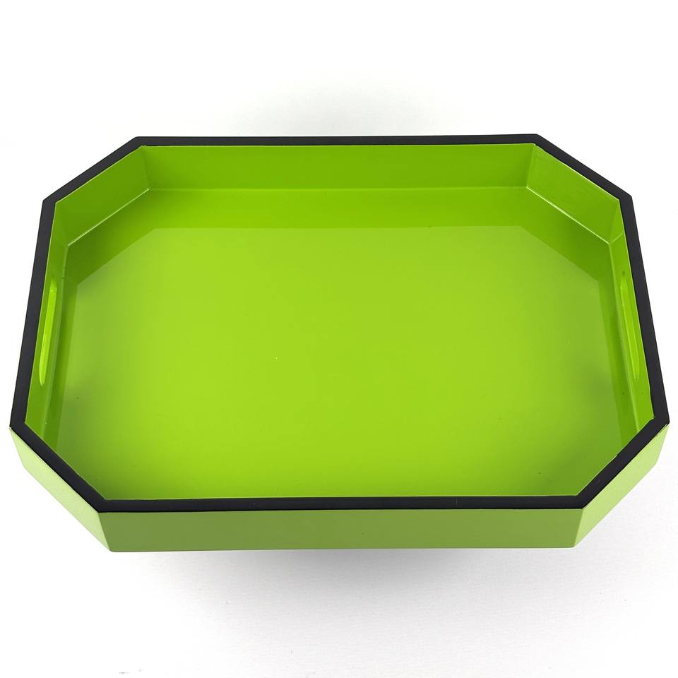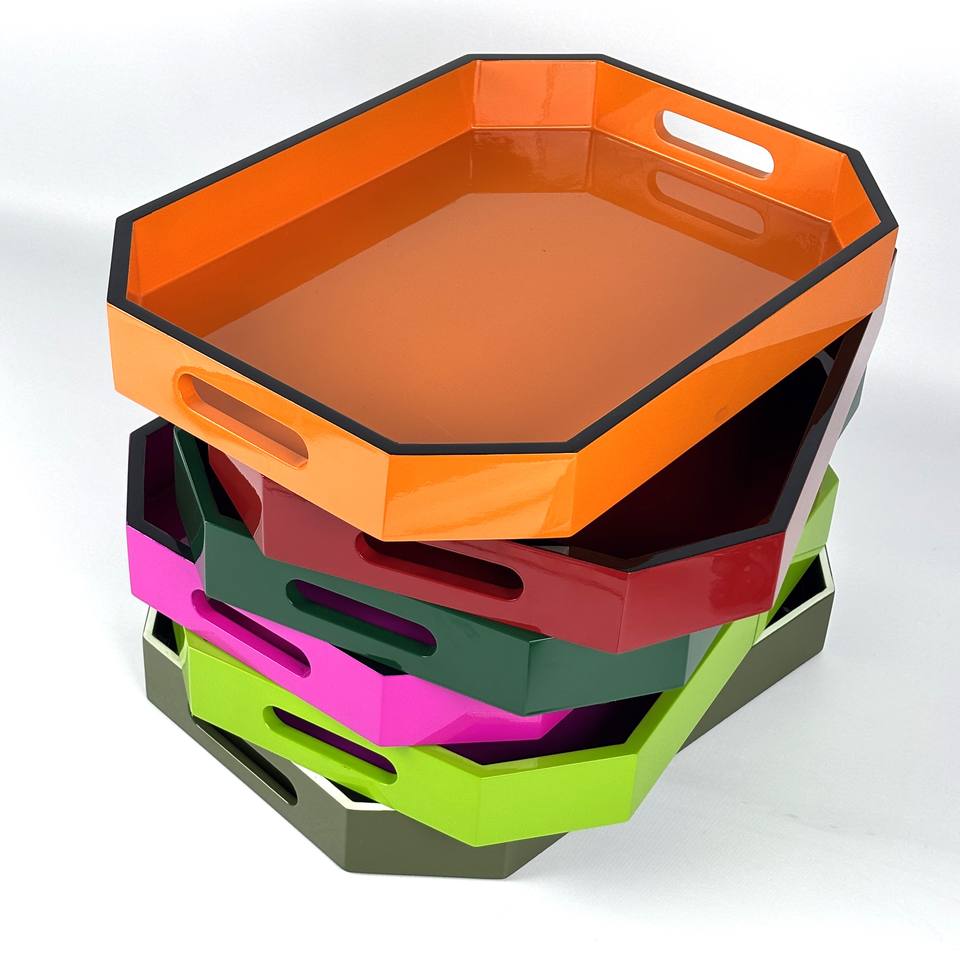 Bandeja de laca MDF hecha a mano colorida, bandeja de servicio octogonal con acabado brillante, vajilla sostenible para decoración del hogar