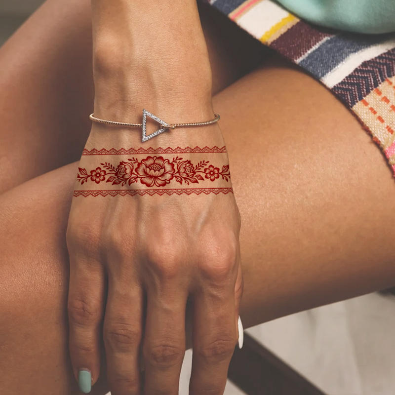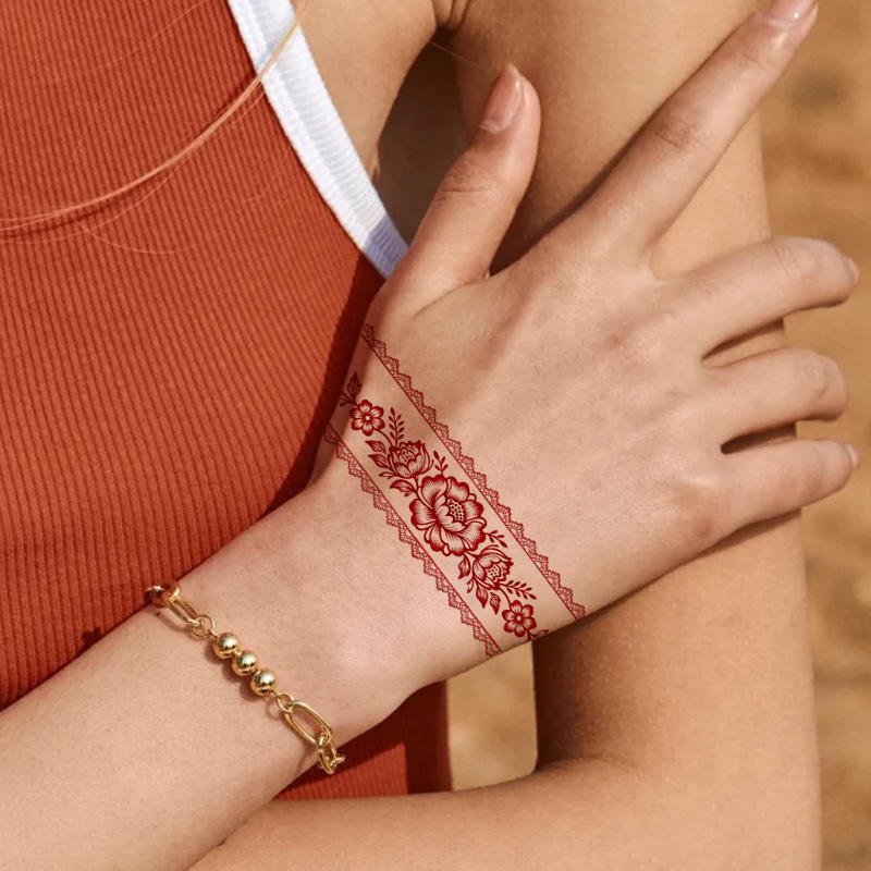 Tatuajes Temporales de Henna Coloridos, Pegatinas de Tatuajes con Estilo Étnico Geométrico, Tatuaje Impermeable Adecuado para la Parte Posterior de la Mano, Muñeca y Brazo