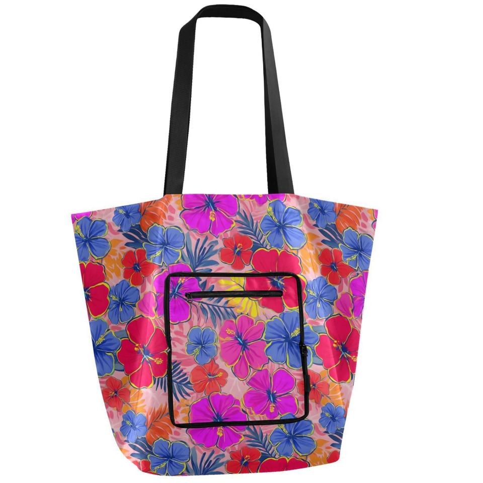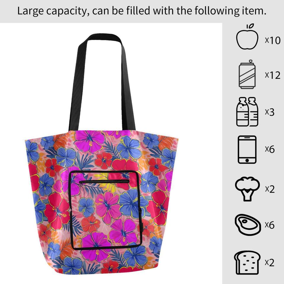 Bolsas de Compras Reutilizables Ecológicas con Diseño de Flor de Hibisco Colorida, Bolsa de Hombro Plegable, Bolsa de Compras Personalizada con Logotipo