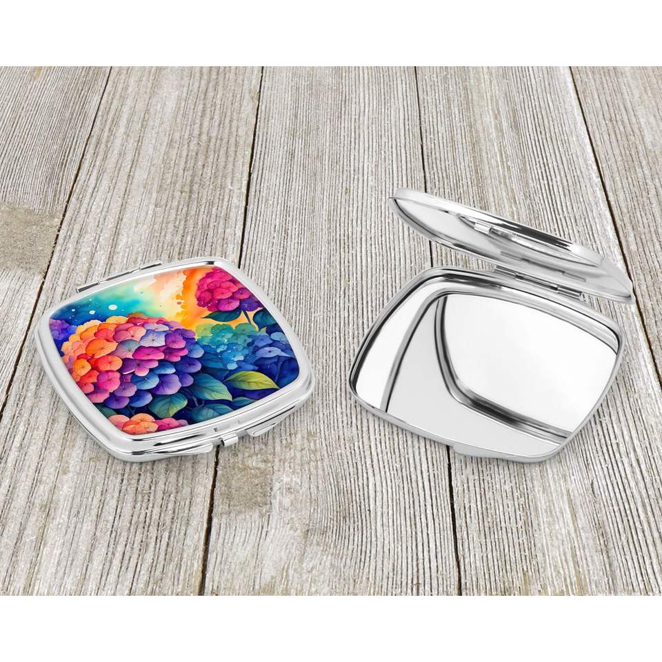 Espejo de maquillaje de viaje compacto de hortensias coloridas, regalo de diseño de mano plegable portátil para mujeres y niñas
