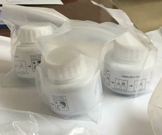 La tinta indeleble pertenece a mercancías peligrosas III, por lo que el paquete debe ser conforme a la