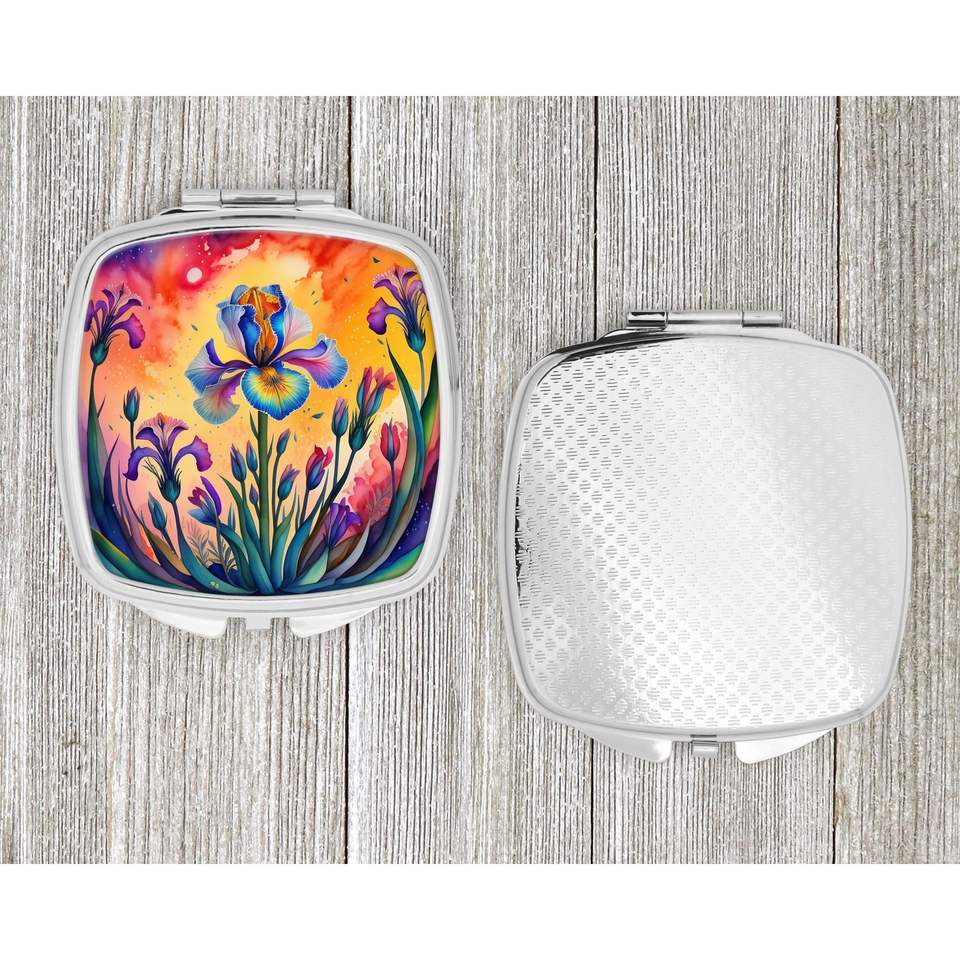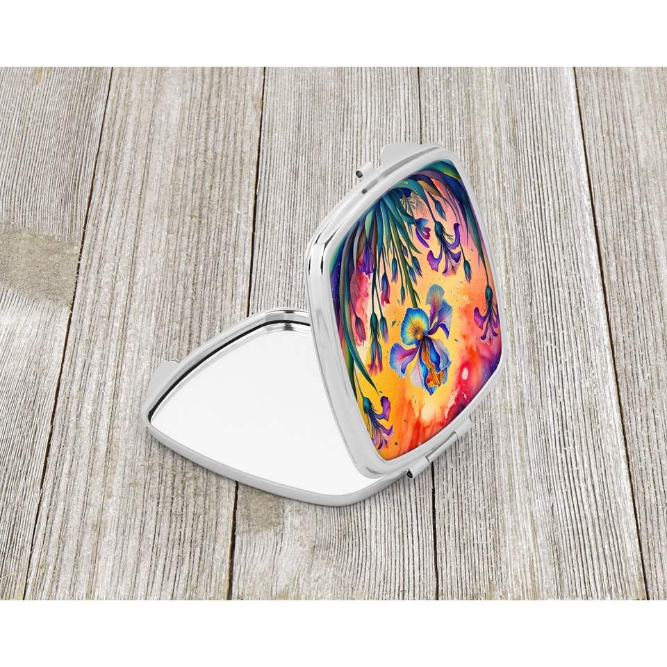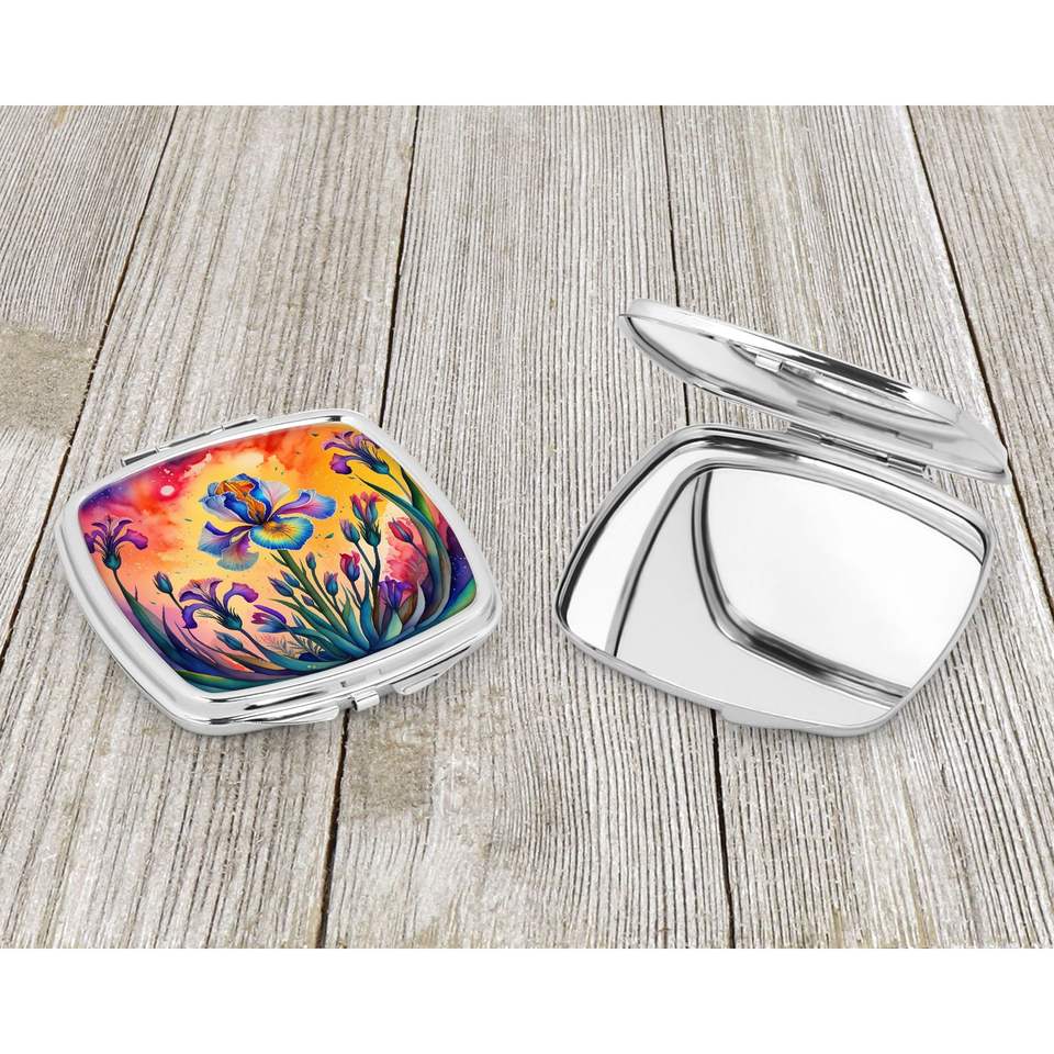 Espejo de maquillaje de viaje compacto Iris colorido espejo de bolsillo de mano plegable decorativo para regalo de mujeres y niñas