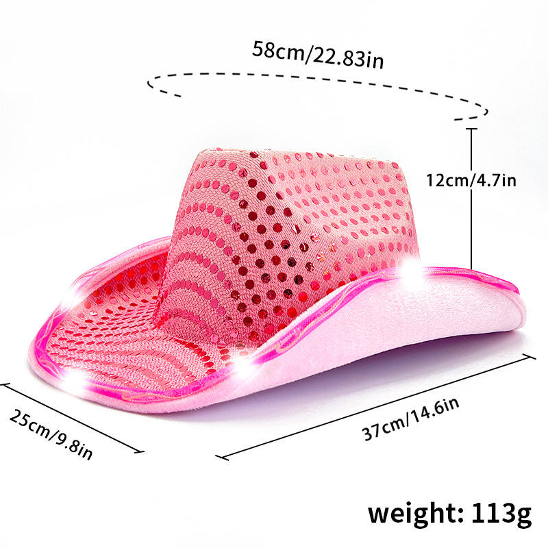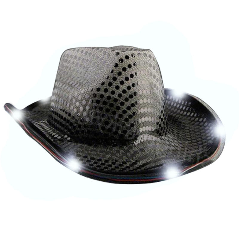 Sombrero Vaquero Occidental Brillante con Lentejuelas LED de Colores y Luces para Fiesta de Carnaval