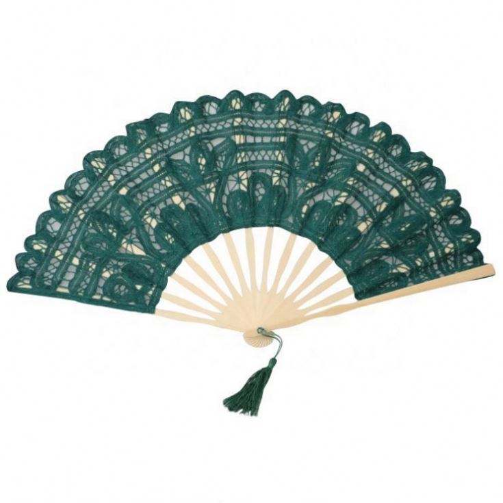 Abanico de Encaje Colorido de 27 CM, Abanico de Encaje Personalizado Hecho a Mano con Varillas de Bambú para Decoración de Bodas, Baile y Fiestas