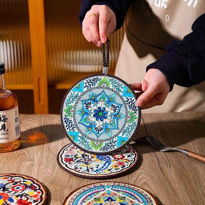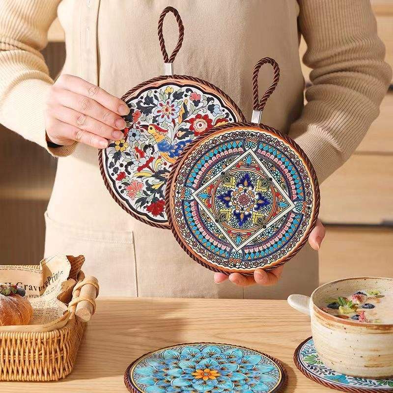 Alfombrilla de cerámica de la serie Colorful Leaf, alfombrilla redonda con diseño floral, aislante del calor, para uso doméstico