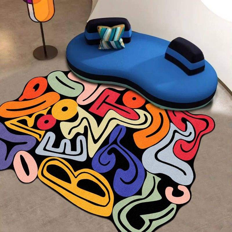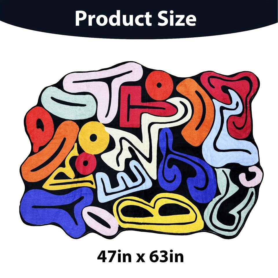 Alfombra de Terciopelo Grueso y Suave con Diseño de Letras Coloridas en Forma Retorcida para Bebés y Niños, Patrones Abstractos en Azul, Verde, Rojo y Amarillo