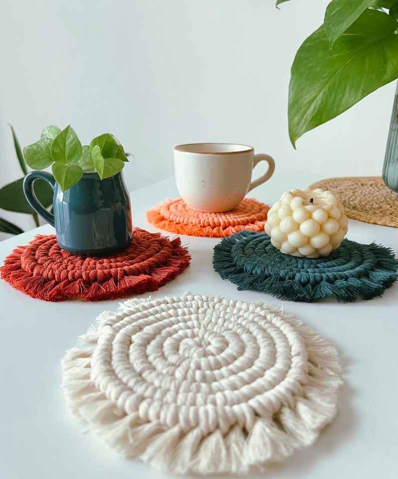 Posavasos de algodón de macramé bohemio hechos a mano, decoración de mesa colorida, manteles individuales de cuerda de algodón, decoración del hogar