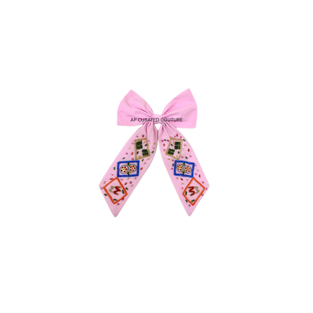 Accesorio para el Cabello de Algodón Bordado a Mano con Fichas de Mahjong Coloridas, Cuentas de Semillas y Lazo de Cocodrilo de Glitter Exports