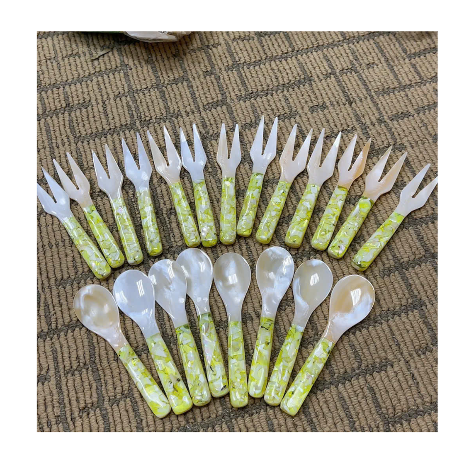Cuchara de concha natural colorida y tenedor de hielo: conchas marinas de nácar personalizadas, artesanía de Vietnam Venta caliente