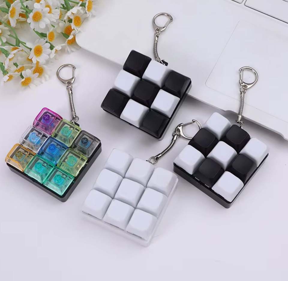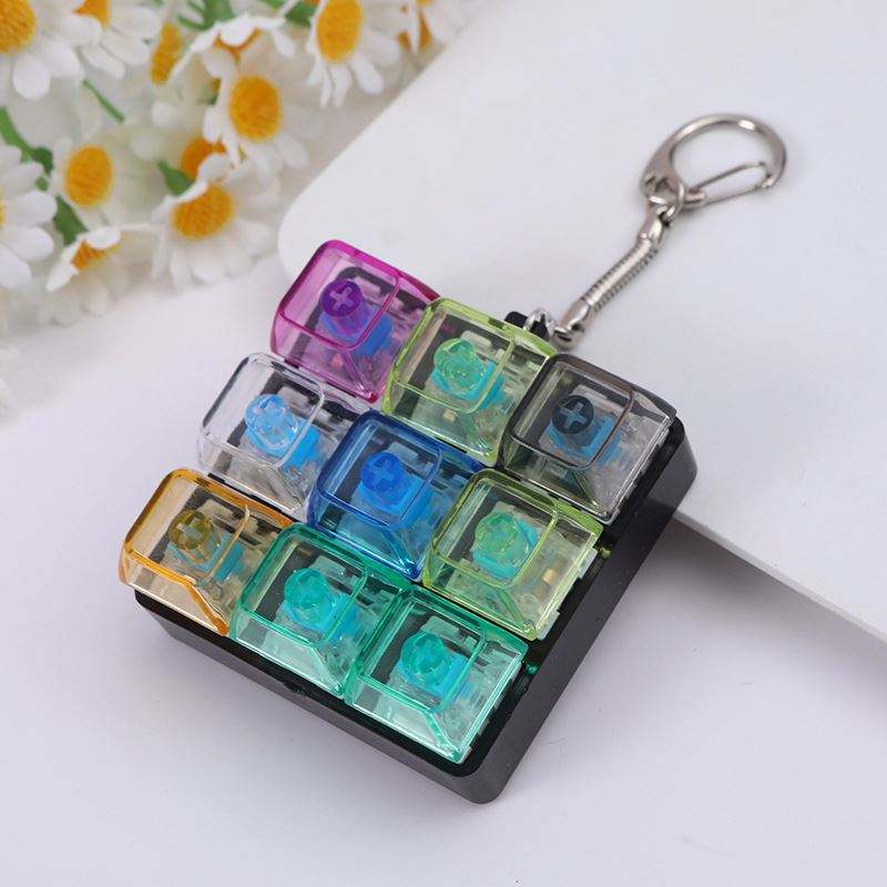 Teclas de Alta Transparencia de Nueve Botones Coloridas, Botones Antiestrés, Llavero de Teclado Mecánico, Modelo 5687