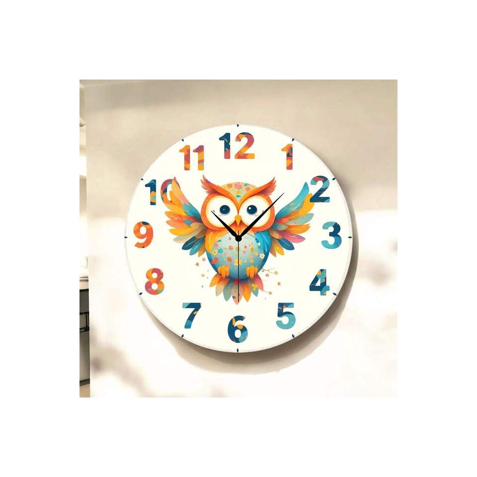 Reloj de Pared Redondo de Madera con Diseño de Búho Colorido, Silencioso, 45x45cm, Idea de Regalo Perfecta