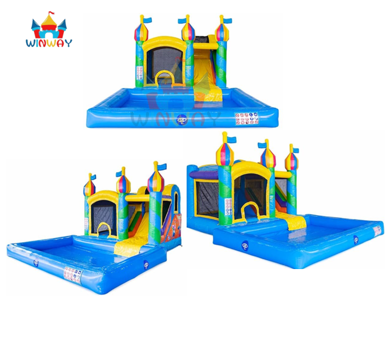 Castillo Inflable Acuático Colorido Estilo Palacio con Tobogán y Piscina para Fiestas de Verano en Alquiler