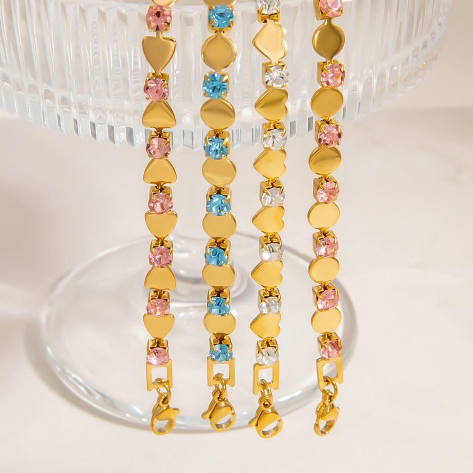 Pulsera de Acero Inoxidable con Diseño de Patchwork Colorido y Baño de Oro de 18K, Pulseras con Dijes de Diseño Moderno para Aniversarios