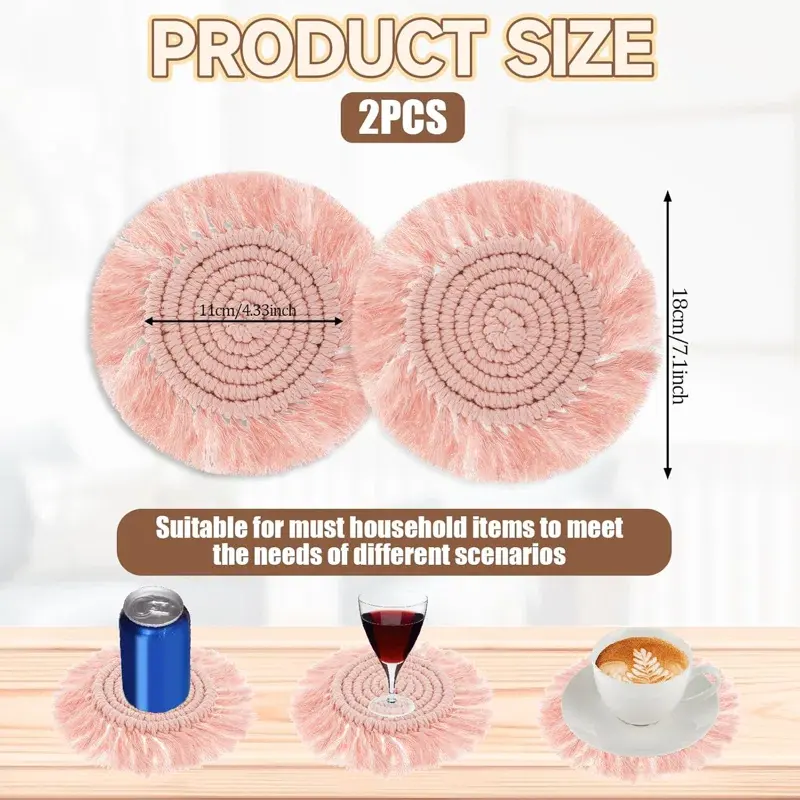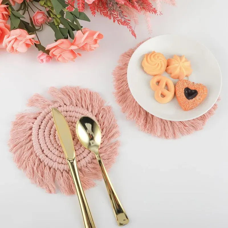 Posavasos de macramé Rosa colorido, manteles de algodón hechos a mano, posavasos redondos de Color personalizado con estilo moderno de lujo