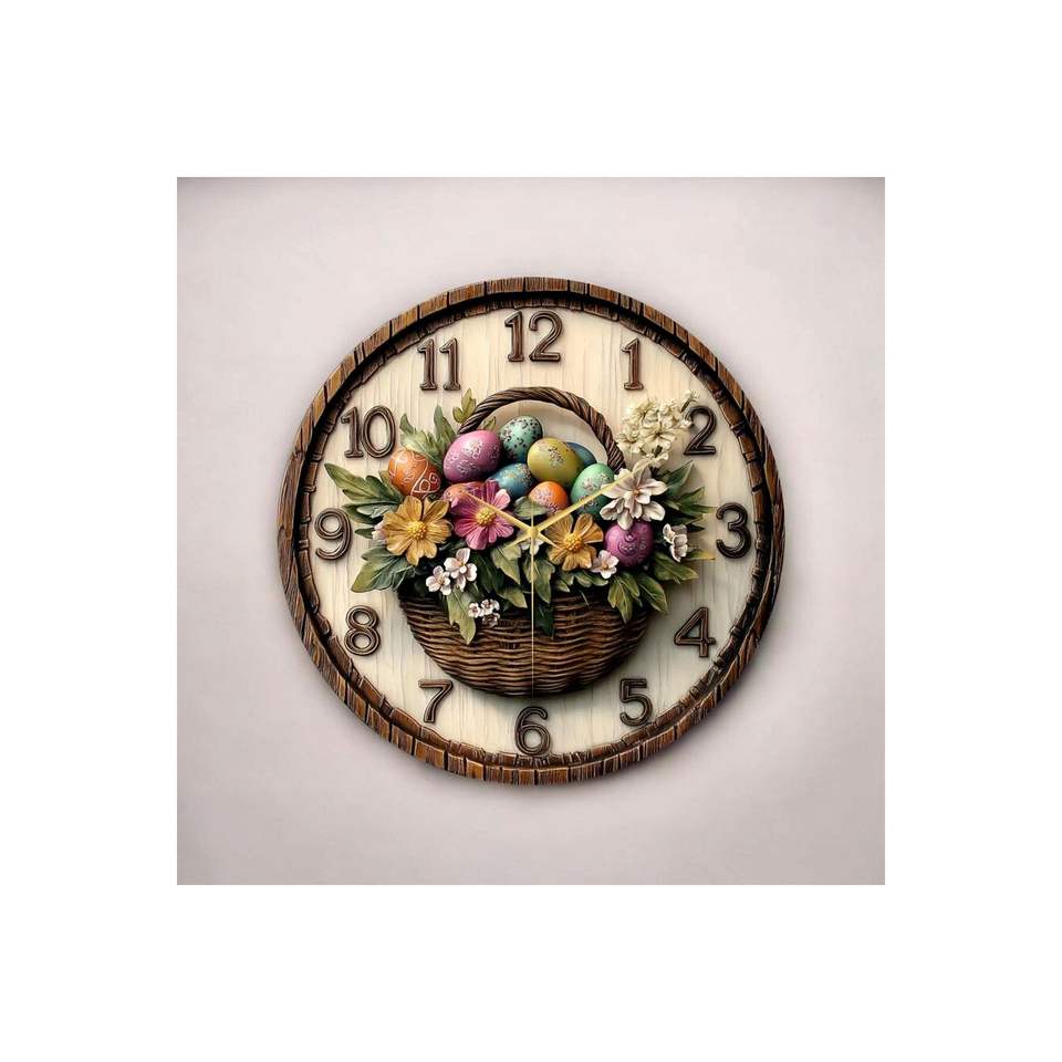 Estampado colorido Flor Huevo Patrón 50cm Reloj de pared Mesa silenciosa Regalo Diseño de madera