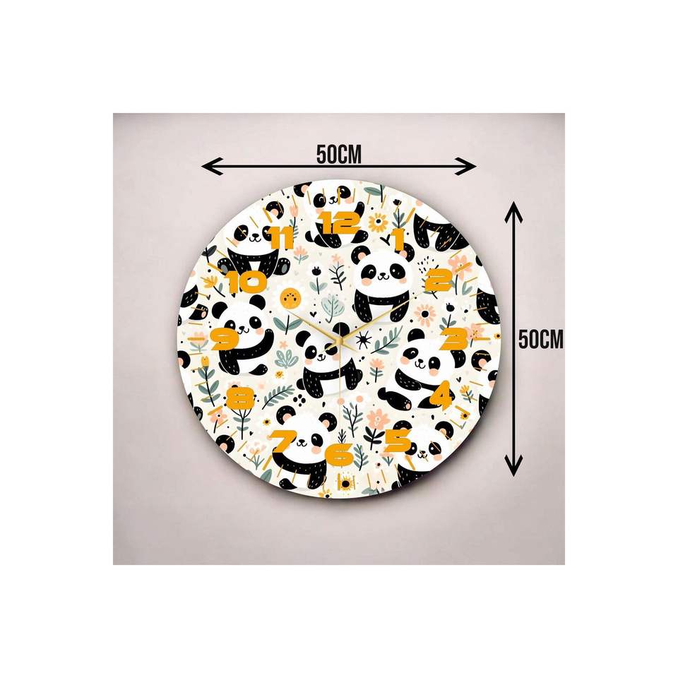 Reloj de pared de mesa para niños con estampado de Panda colorido, regalo de madera silencioso de 50cm para visualización de números
