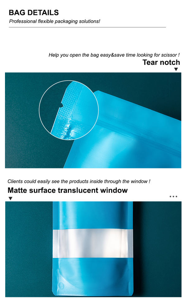 Colorful Printed Plastic Aluminum Foil Stand Up Zipper Pouch Bag With Clear Window Inner with transparent protect bag. Outer with 5 layers paper box. Pallet if needed.