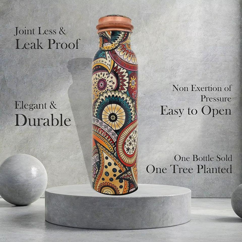 Botella de Agua de Cobre Puro con Diseño Antiderrames sin Juntas, Impresa a Color, para Hogar, Oficina y Viajes, Venta al por Mayor desde India