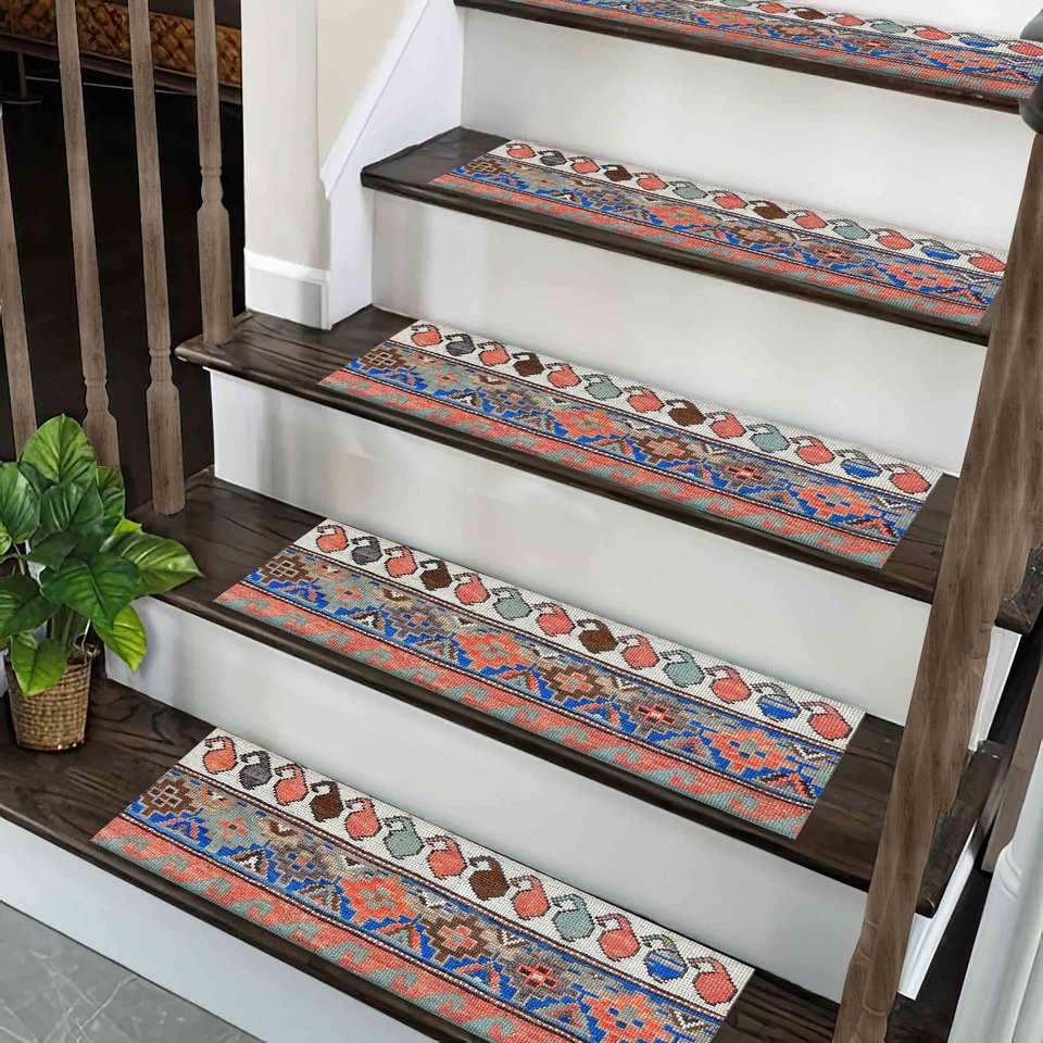 Alfombra estampada colorida - Alfombra moderna de estilo bohemio azteca, fácil de limpiar