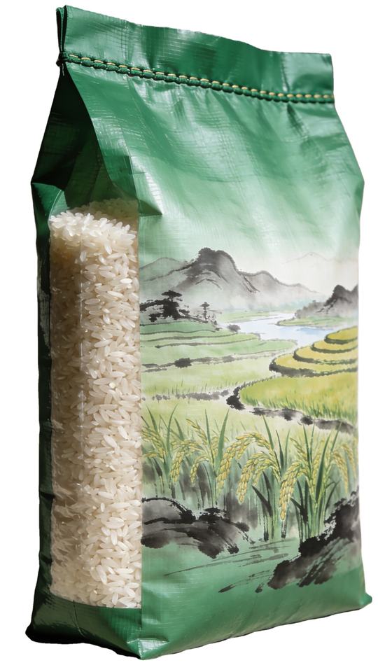 Bolsas Tejidas de Polipropileno de 20kg, 25kg, 50kg con Ventana, Personalizadas con Impresión a Color para Arroz