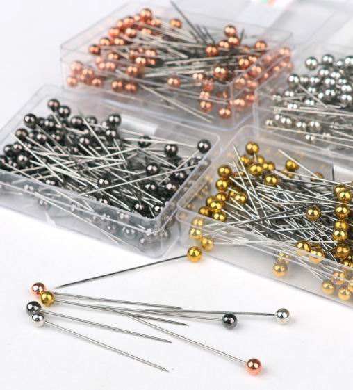 Agujas redondas coloridas con cabeza de perla, alfileres de costura de punto de empuje recto para confección, herramienta de posicionamiento Diy