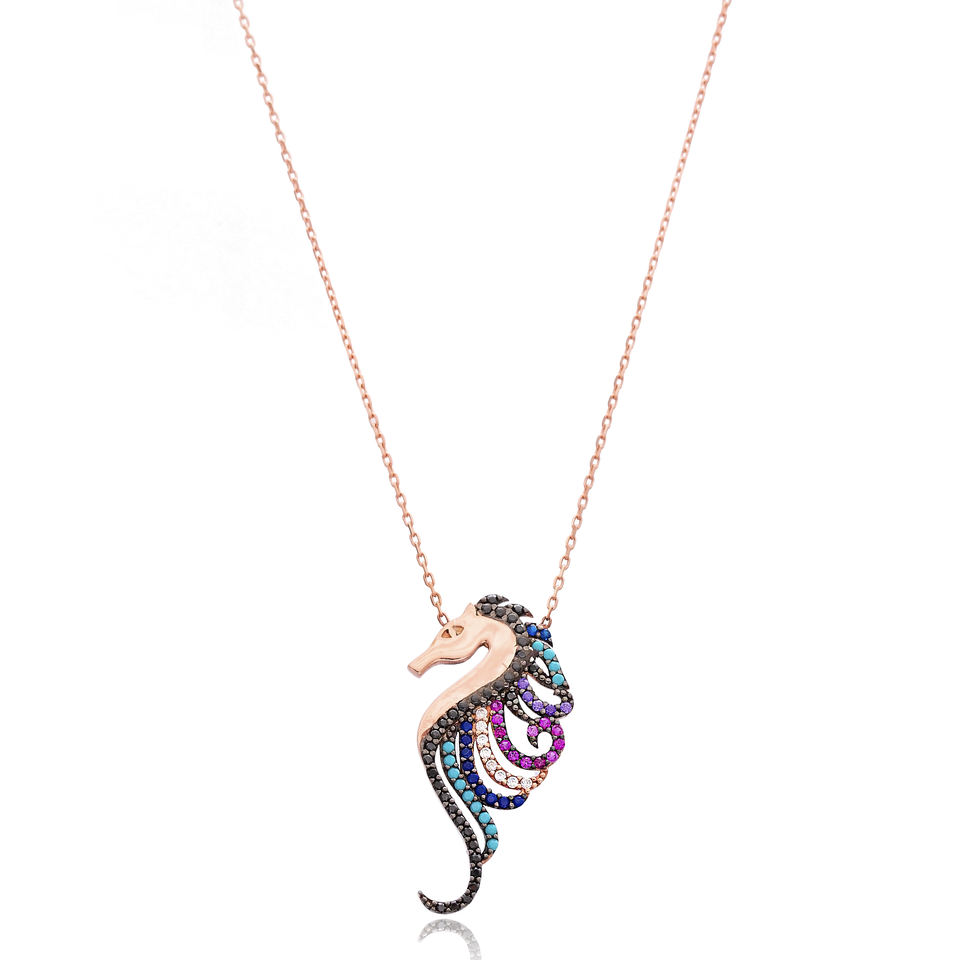 Collar colorido con forma de caballito de mar, venta al por mayor, joyería turca de Plata de Ley 925