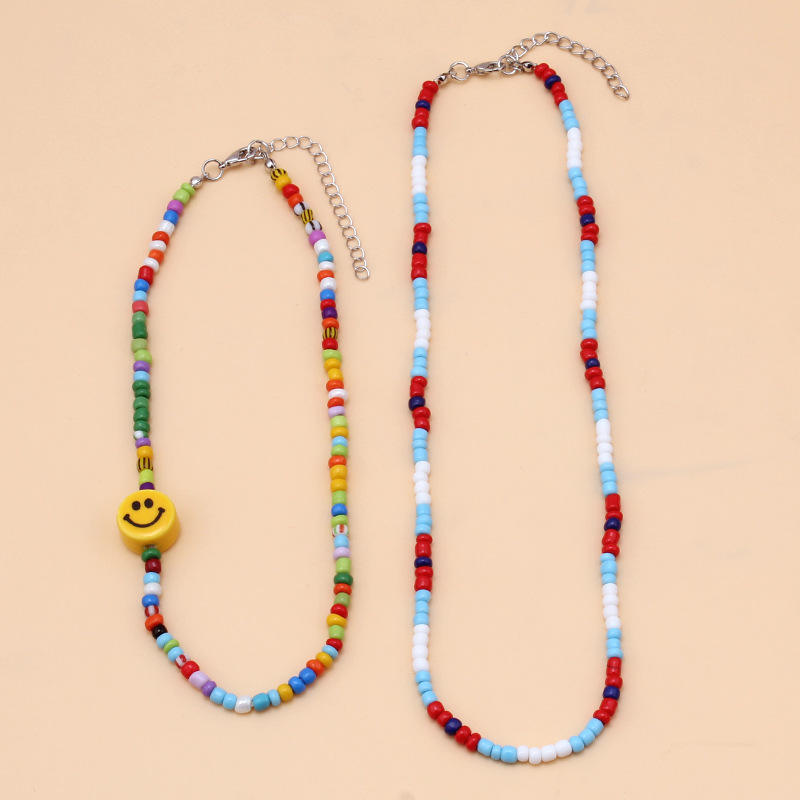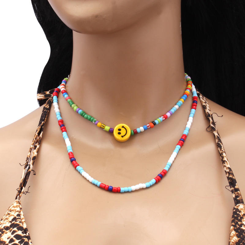 Collar de Cuentas de Colores con Colgante de Cara Sonriente, Joyería de Fiesta Estilo Bohemio, Gargantilla Corta, Accesorio de Moda
