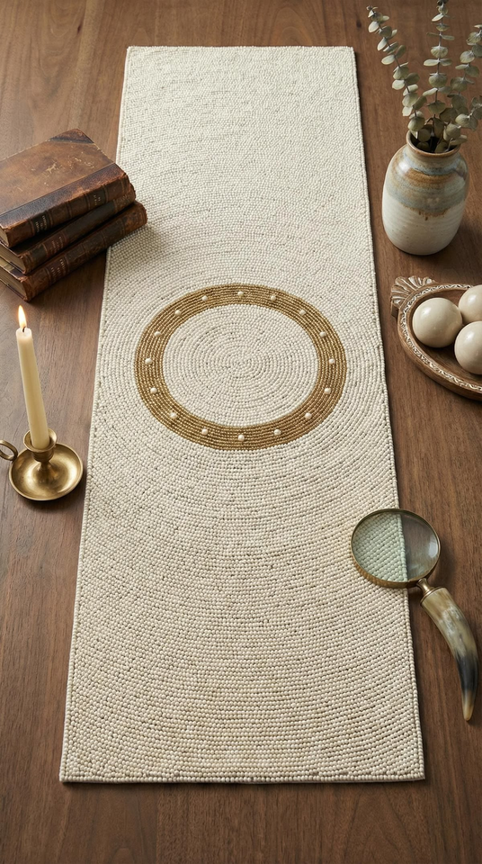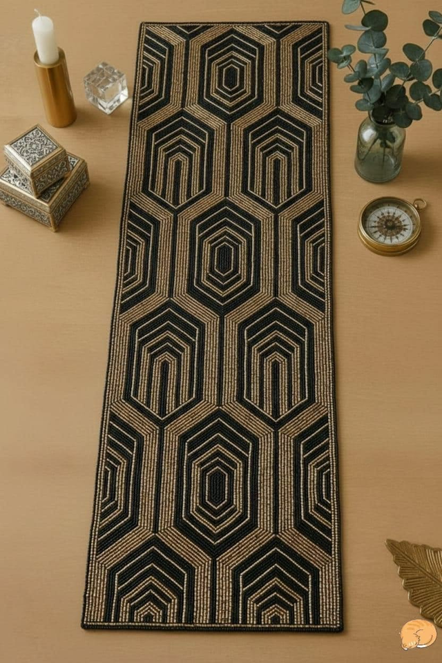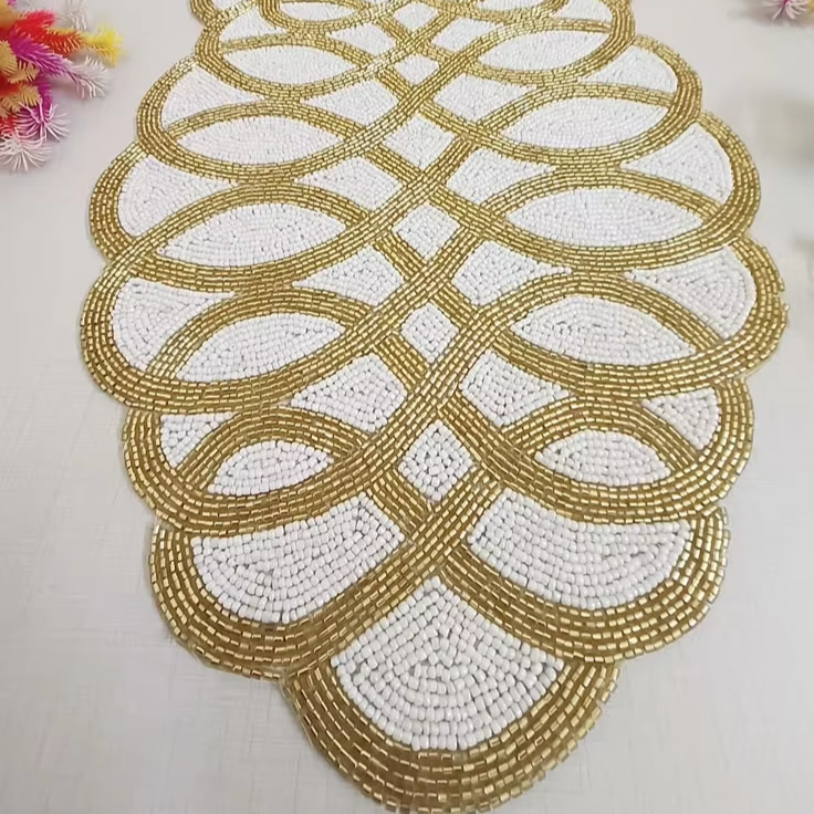 Camino de mesa de cuentas de colores para decoración moderna de sala de estar estilo boho, camino de mesa artesanal con bordado floral de verano.