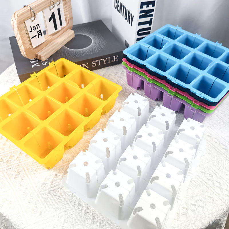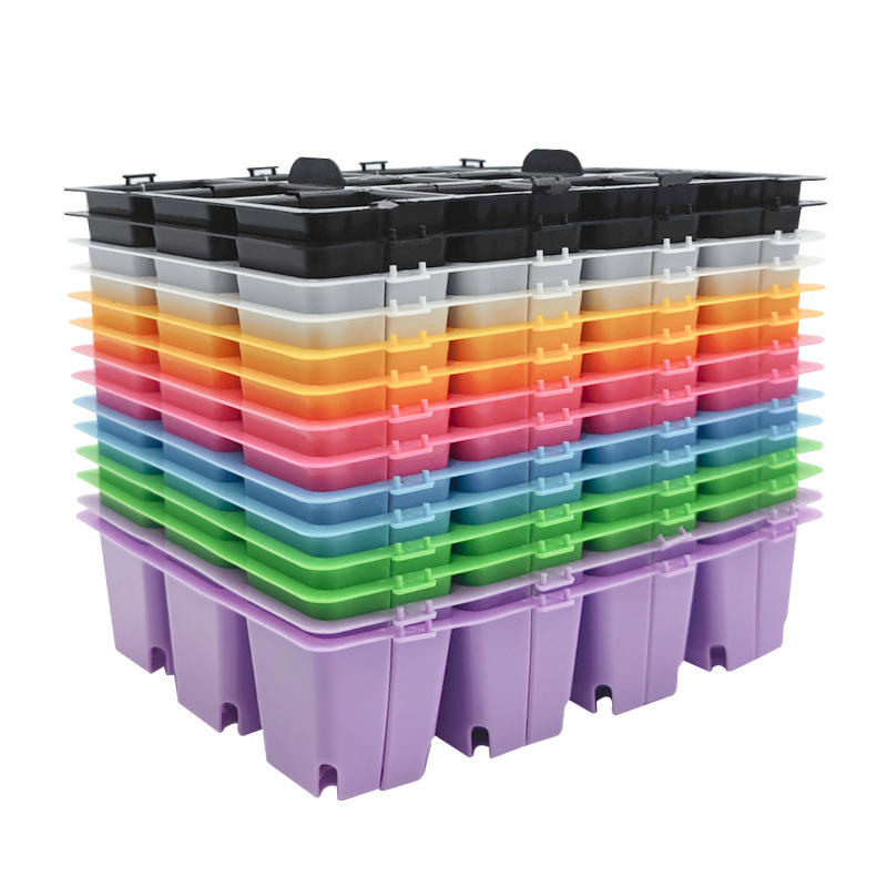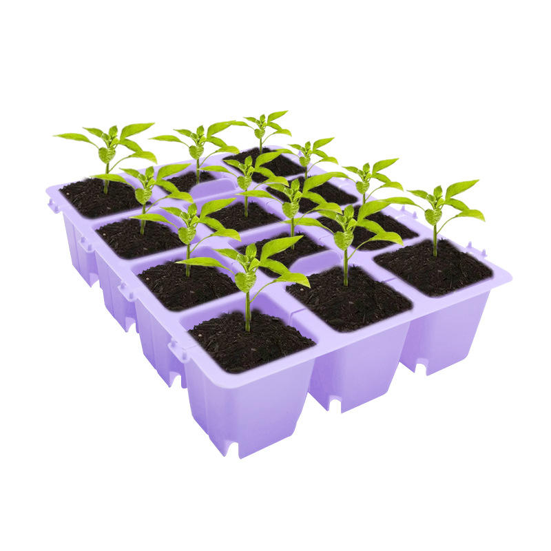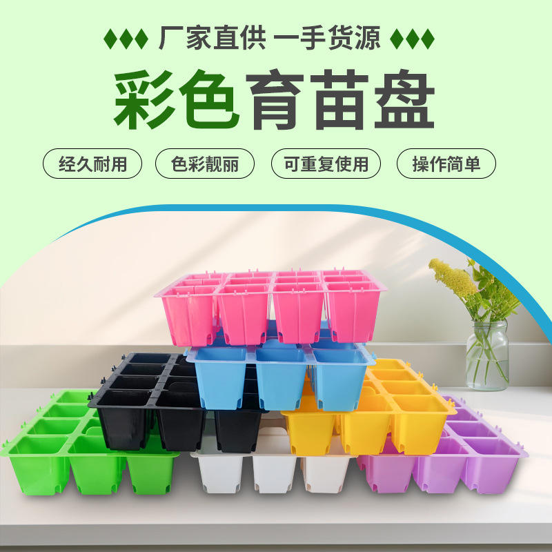 Bandeja de semillero colorida de 12 orificios, reutilizable, de plástico, para jardinería en casa