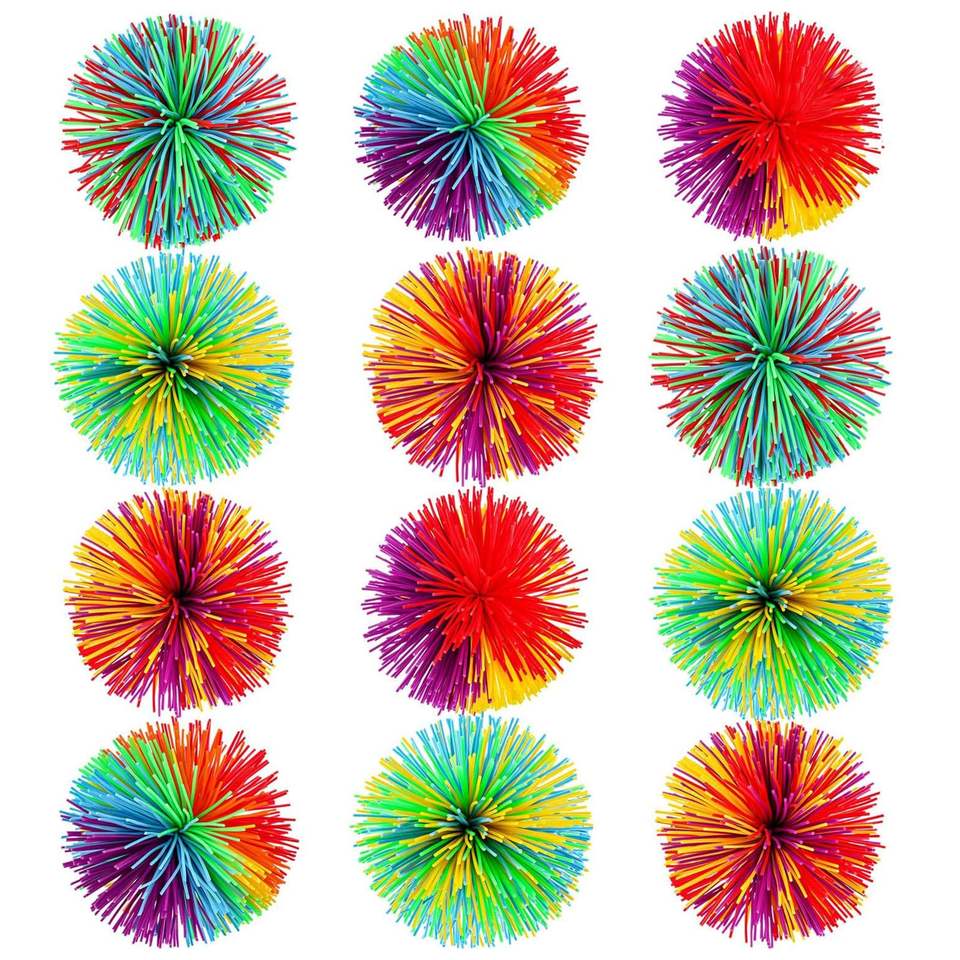 Colorido Stringy Bouncy Rubber Rainbow Pom Stringy Ball Alivio del estrés Fidget Juguetes sensoriales