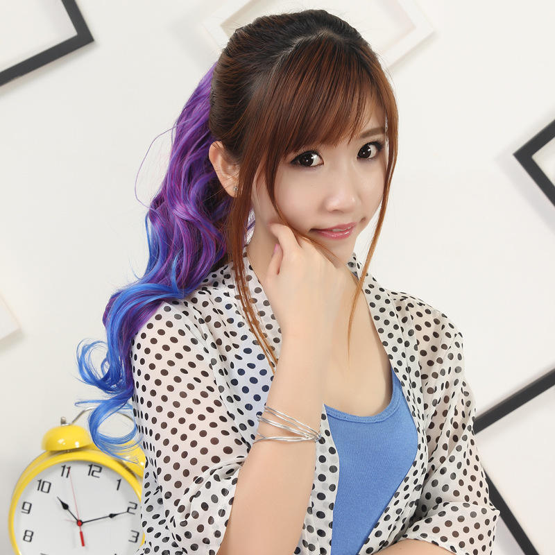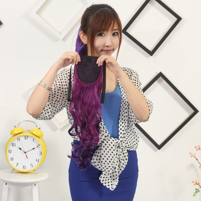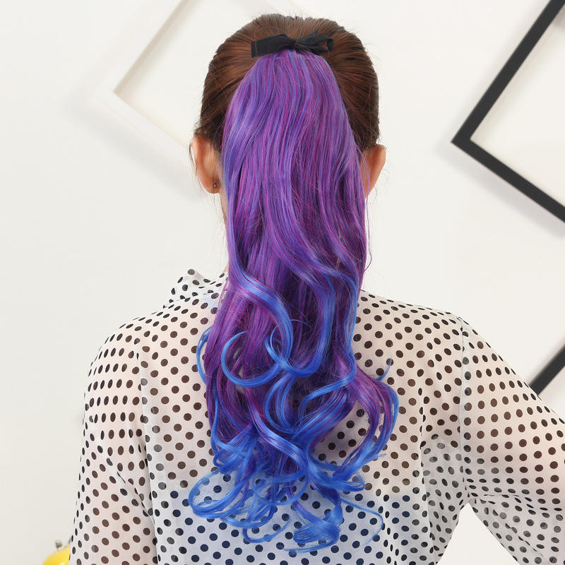 Colorido verano gradiente Cola de Caballo encuadernación pelo largo y rizado correa de fibra química coletas elegantes y de moda