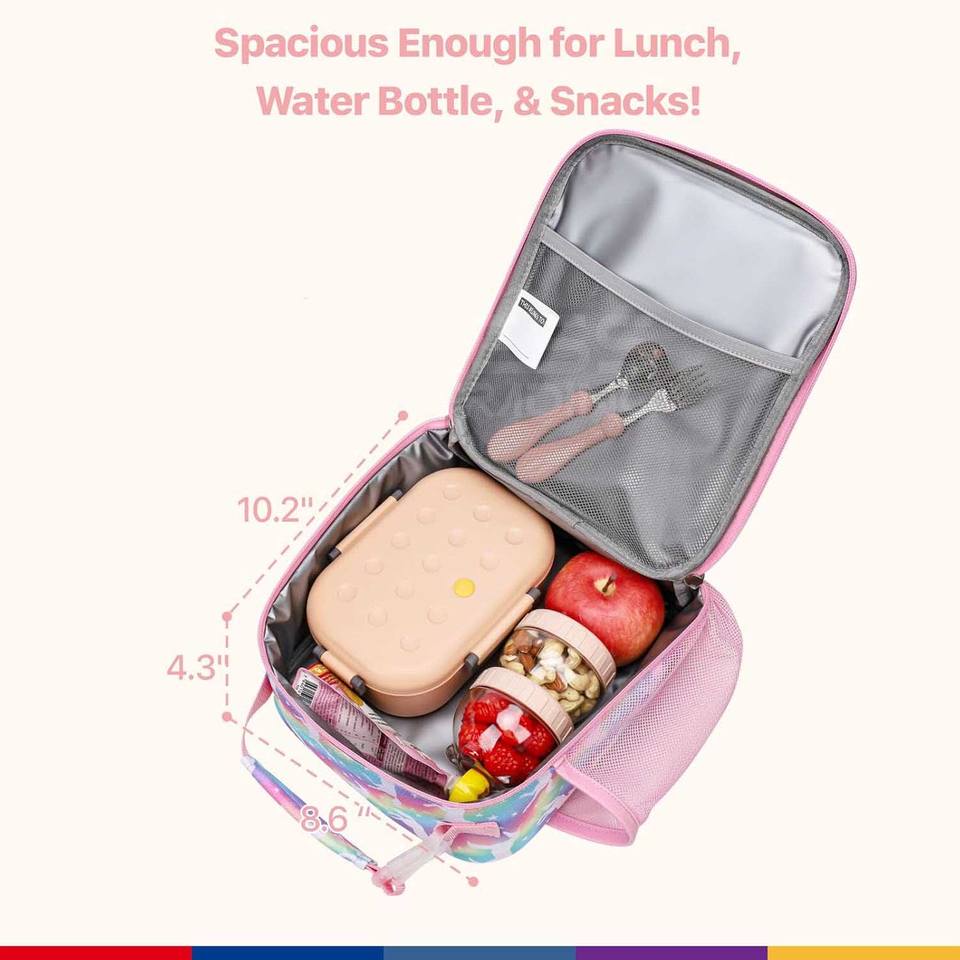 Fiambrera colorida de unicornio para niños, reutilizable, aislada a prueba de fugas con soporte para botella de agua para guardería infantil y almuerzos escolares