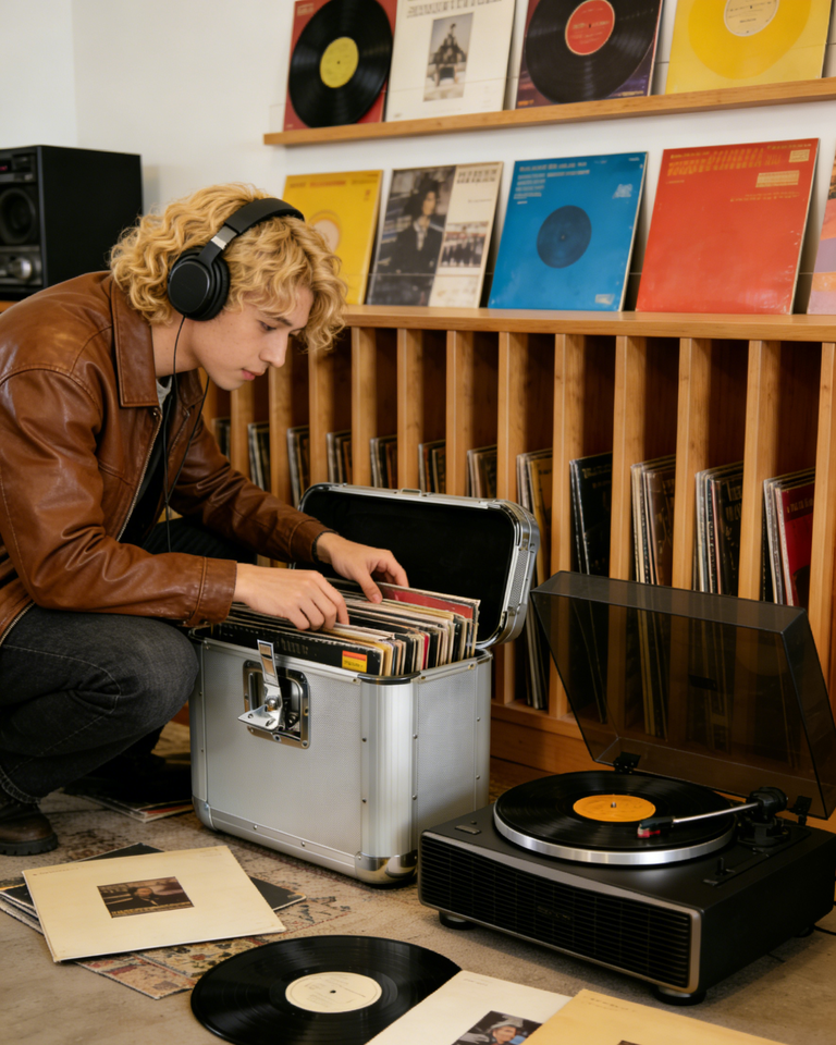 Utility case with a fully foam-lined made to hold vinyl records