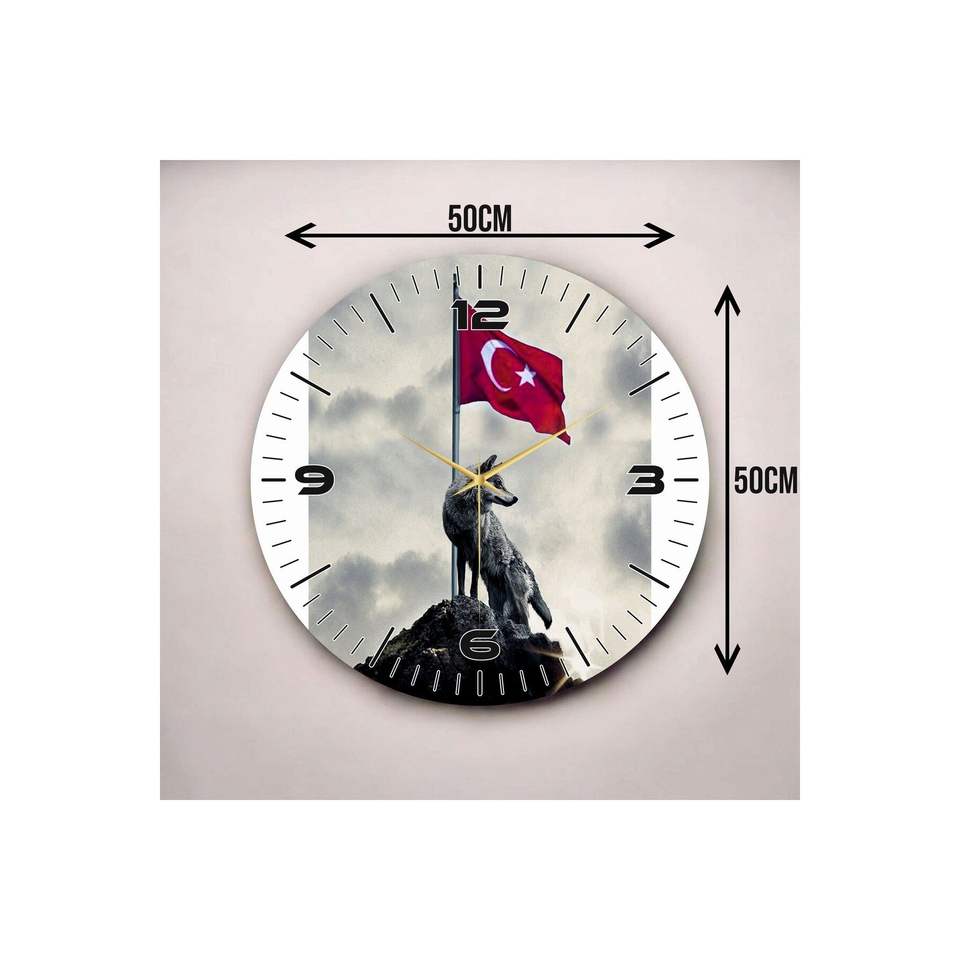 Reloj de Pared de Madera Colorido de 50 cm, Decoración Silenciosa para Mesa con Bandera Turca, Patrón Bozkurt, Diseño Clásico, Regalo Duradero