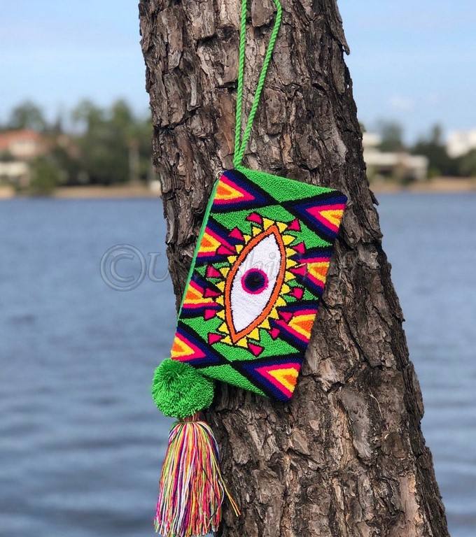 Bolso de mano para mujer estilo bohemio wayuu hecho a mano con bordado de lana de colores, hecho a mano por urvashi craft