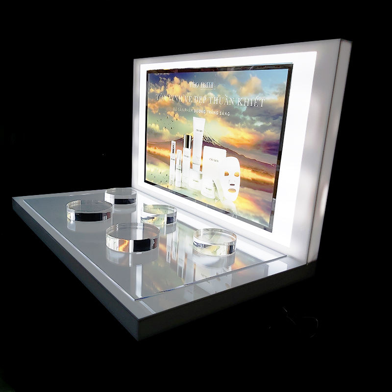 Cosméticos de acrílico del Gabinete de exhibición:Ajustar la dimensión de la impresión del logotipo del cliente