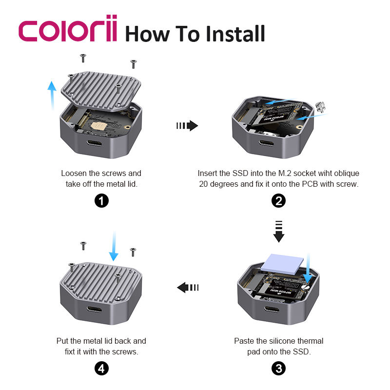Colorii MC13 2230 M.2 SSD carcasa USB C 10Gbps NVMe disco duro para APPLE LOG iPhone 15 pro Max